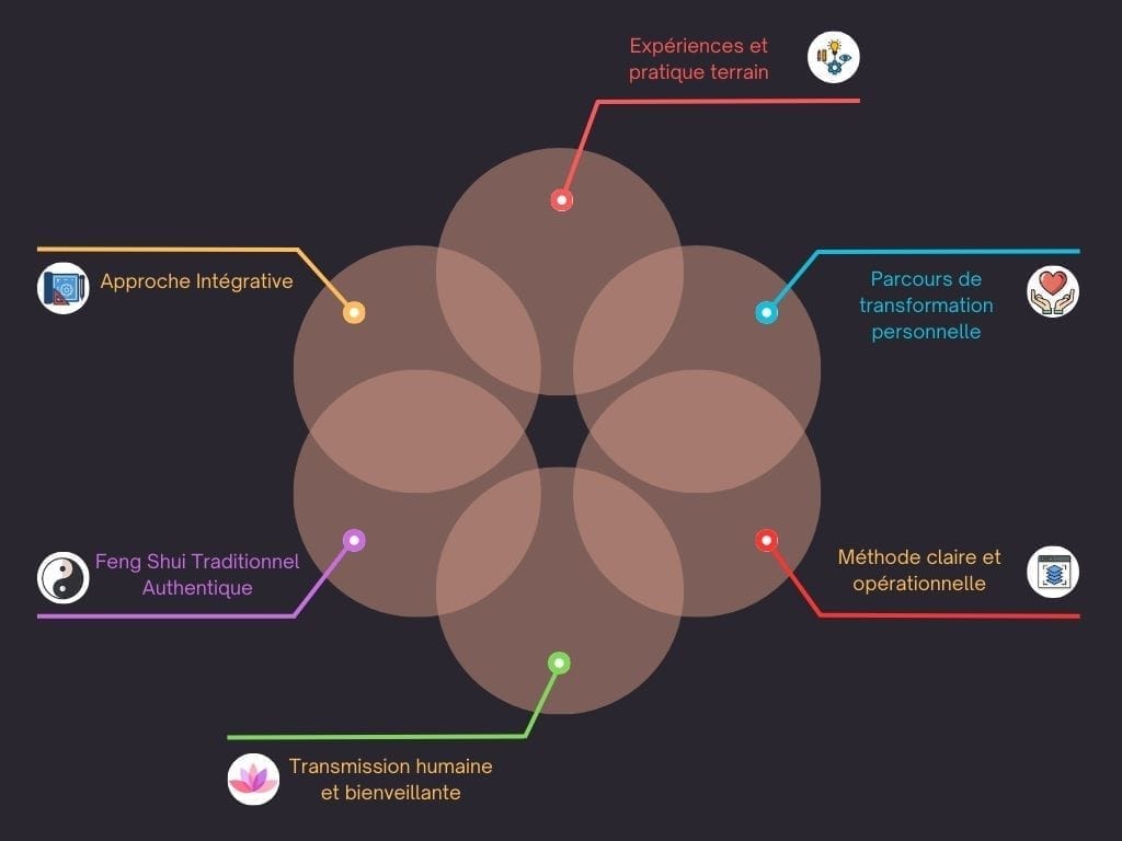 Un enseignement qui transmet la richesse du Feng Shui traditionnel dans sa profondeur, avec fidélité aux textes et à la philosophie originelle, mais toujours rendu accessible et ancré dans le concret du monde actuel