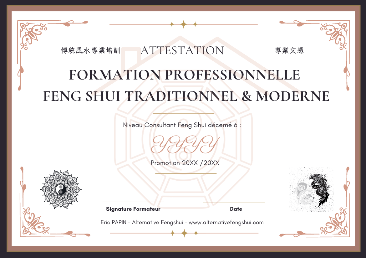 Attestation de compétence de Consultant Feng Shui